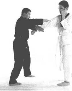 3 甲方上步外侧十字手封指。