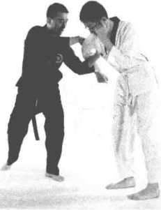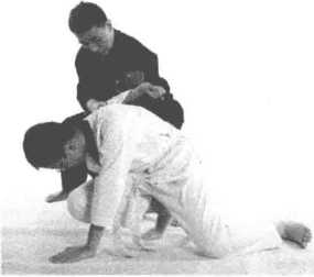 4 甲方右手回拉左手穿绕两手合抱乙方手臂将其控制于地面。