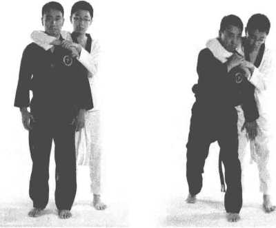 (-)动作过程1 乙方在甲方体后右臂锁甲方颈部。(图2-97)2 (图2-98、(图2-98、甲方右手扣住对方的手左手击裆撤右步钻身左砸肘。(图2-98、(图2-98、图2-99)图2-97 图2-98图2-97 图2-98图2-99图2-99图2-97 图2-98图2-97 图2-98图2-99图2-99(二)动作要点击裆狠撤步砸肘流畅有力。