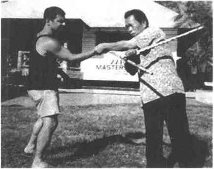 李小龙的短棍格斗技法直接来自于爱徒伊诺山度手中(图426),因为伊诺山度在投入李小龙门下之前便已学会且精通了这门在菲律宾族人中秘传的魔杖(图427),且有棍王之称。当然作为对恩师的回报他又将这门独特的格斗技艺破例教给了李小龙从而极大地丰富与完善了李小龙的格斗技系统并为李小龙后来在电影中的精彩表演提供了不可多得的精华元素。李小龙在菲律宾棍法的基础上又融入了一些截拳道的实战心法及传统武学中的棍法精萃,而整理出一套实战价值极高且速成的实战搏击训练教程开了短棍技术的训练与搏击之先河。现择其精华部分叙述如下。