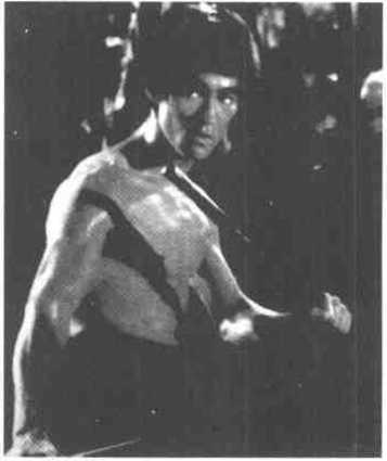 图429图429图430图430在实战搏击中李小龙先以一记右手反手扫棍击中对手的头部右侧要害处(图429),