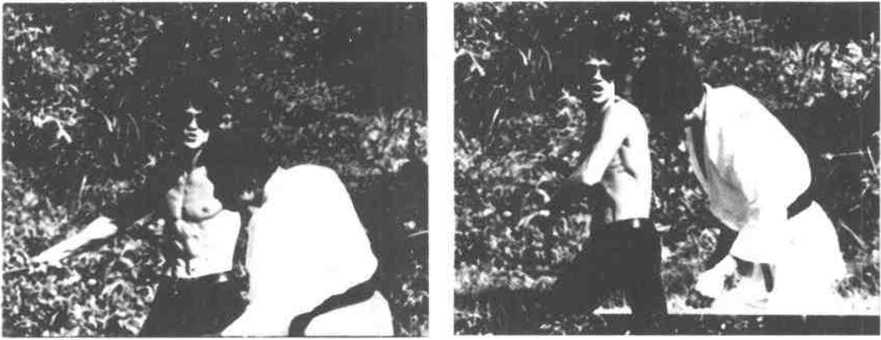 部右侧空档处。为了最终制服对手李小龙又在猛然向左方转体的同时猛发右横扫棍重重击中了对手的头部左侧(图431),令敌因连连中棍倒地。