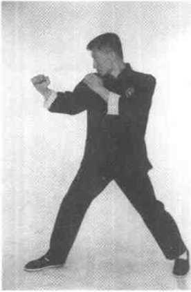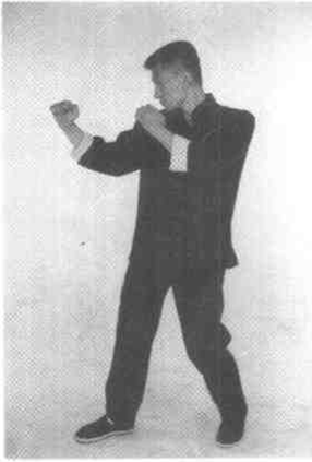 图93图93图92图92图94图94练习时由戒备式开始(图95),先将前脚前滑(图96),同时迅速将后脚跟进(图97),接下来再疾将前脚前移而恢复戒备式(图98)。亦可根据情况而连续前冲以便迅速追击,后移中的对手。其实战运用动作则如图99、图100所示面且有时左脚也可能会叉到右脚后而去但却不会影响身体衡因为这只是一个瞬间的动作