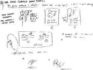 在实战搏击中。李小龙多要求我们在格挡的瞬间右拳便打中对手(图244、图245)图246为利用前手进行内侧高位格挡并用左拳进行打击时的一个典型动作。图247则为李小龙手绘的有关内侧高位格挡法之动作幅度、正误对比、发力部位以及实战运用方法方面的示范