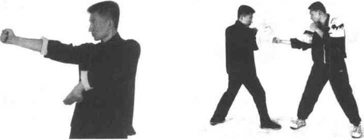 动作要领左(右)手格挡的动作要及时、轻快要恰使来拳改变打击路线或卸力即可右(左)拳反击要准确、迅速、强劲亦可由此引发一连串的连续打击动作以扩大战果。