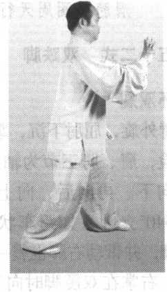 图229 图230图229 图230蹲;左掌尖同眉高,在脸左侧,沉肩坠肘;头、身不变(图229、图230)。