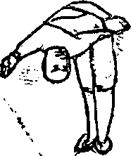 9 翻一团即是身向后翻头翻到后面弯腰把头伸进两腿中间身体弯曲目向前看(图432)。