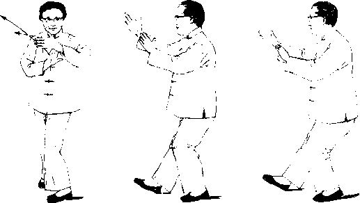 图 3-11图 3-11要领:揽雀尾是太极拳的主要手法 之一?,腰部旋转,手臂随之,步也随之转动,所谓“步随身 换”,就在本式表现出来,并显示出它的灵活性能。更须注 意身体准备,全身放松,气宜鼓荡,劲蕴于内,外示安逸,学 者宜深加体会,进步自然迅速。
