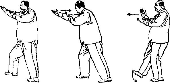 1 .上身向西南转时,右脚向西迈一步,重心移至右