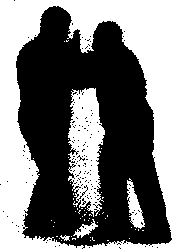 2 .当甲方右手接住乙方左手时,乘势将乙方左臂捋向左 侧,同时腰向左转,乙方右臂弧线形上举,右手贴住甲方左肘 外侧,步法不变。(图计62)