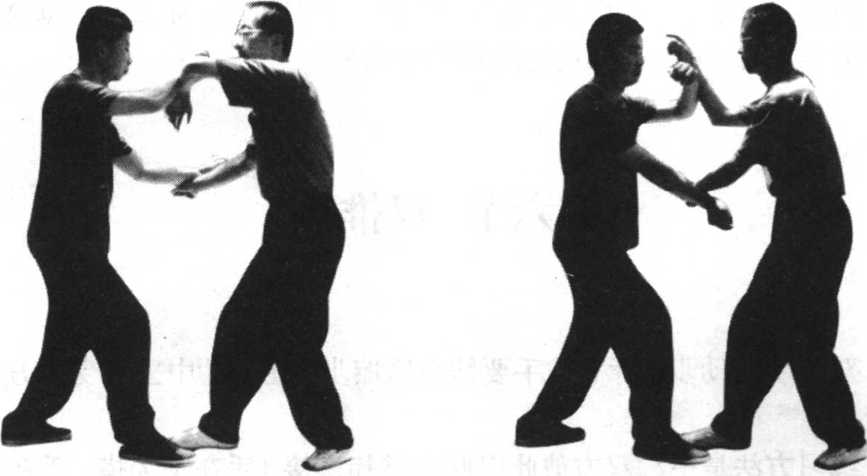 练习双推手要特别注意单双重的问题。所谓手的双重,就是两手 平均用力。脚的双重就是步法无虚实之分,重心放在两腿中间。如果 两手双重,必然双手动作呆滞,难以变化和控制对方。两脚双重,不 但进退不能自如,更无法发出力来,很容易被对方所控制。在练习及 运用之时要努力加以避免。
