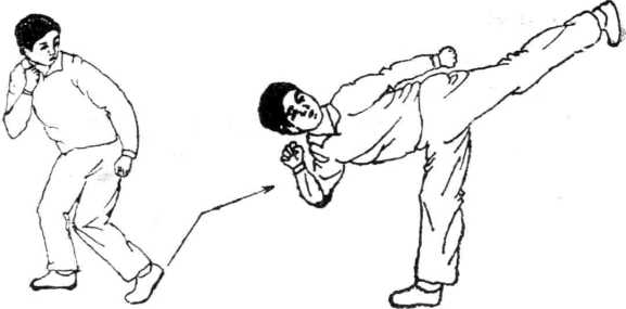要点提示尽量提高蹬击速度使腿更具威力。如果双方距离较远应挺胯发力。