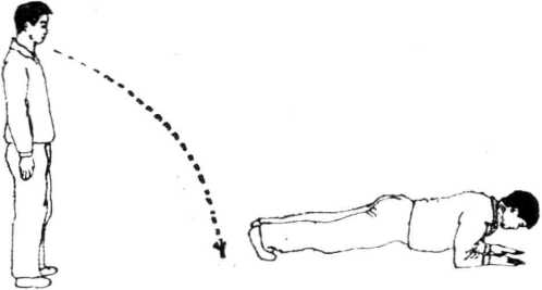 倒地法是格斗中倒地的方法。练习它的目的再于自我保护倒地时不被择伤或者减轻损伤变被动为主动以适应格斗中千变万化的情况。1前倒动作说明立正开始身体自然前倒在快接触地面时两臂屈肘护于胸前掌心向下以手掌、手臂依次落地身体挺直抬头收腹目视前方(如图163、164)图163 3164要点落地时身体、手臂保持一定的紧张度落地时只是两臂和两脚掌着地。落地时微吐气减轻震动。腿挺直含胸收腹。