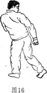 除此姿势外为了达到预期的攻击效果另有一些麻痹、诱惑对方的格斗姿势如分掌式背门式等(如图15、图16)