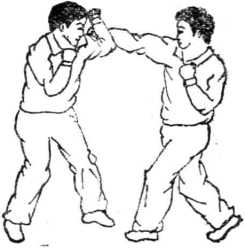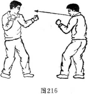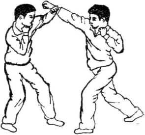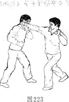 2 防右直拳对方右直拳攻我头部我用左掌拍开(如图222、223)