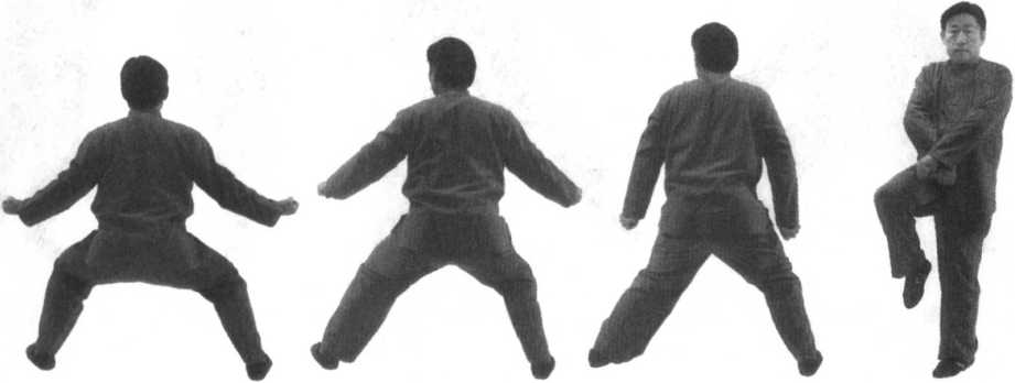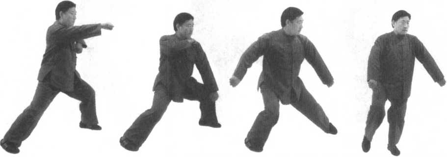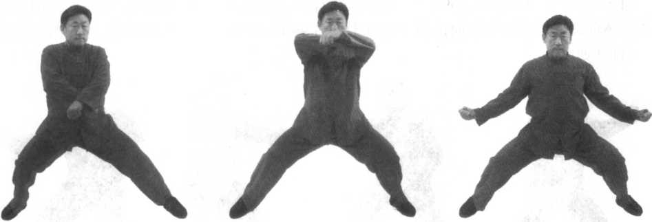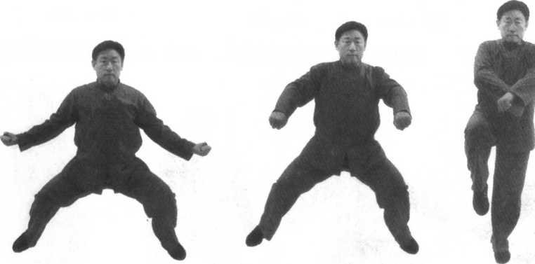 三步,发劲三次。(面向南)