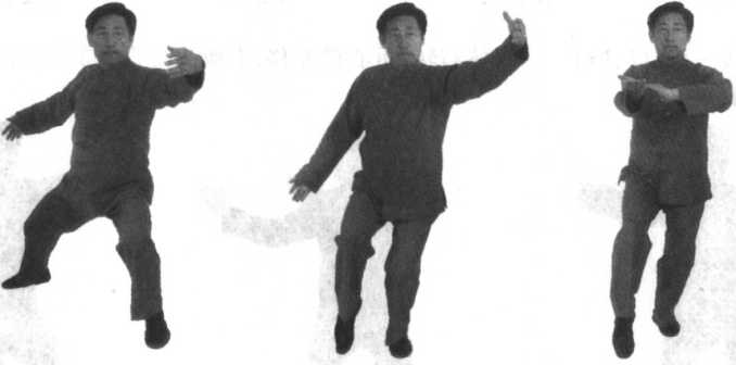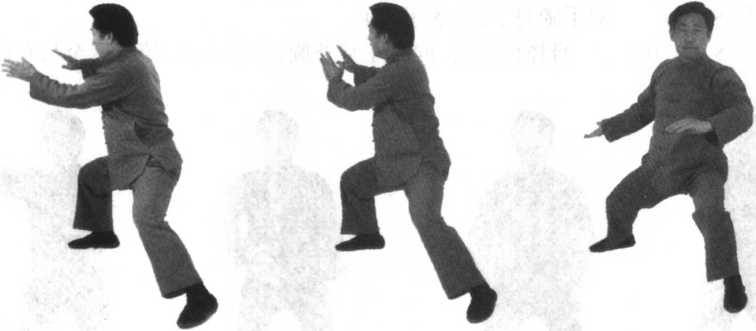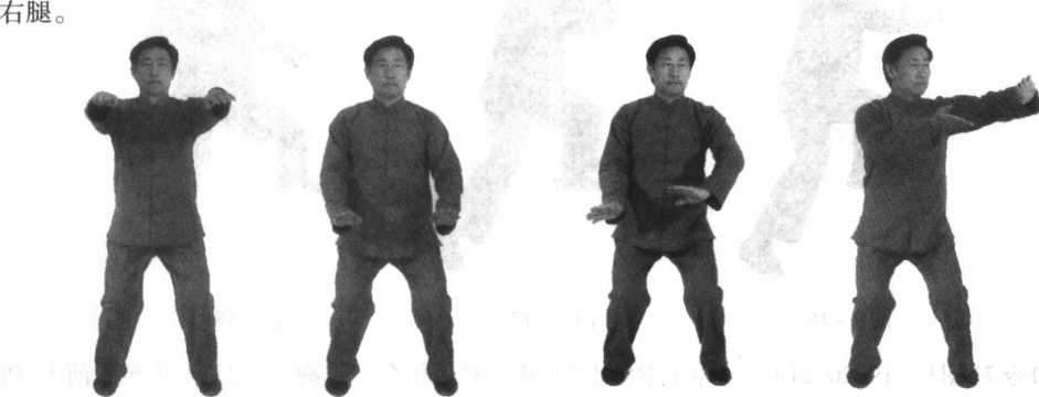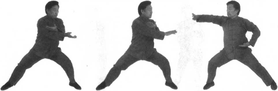 要点:1.当右足迈出时,须恰是右手向左顺缠下沉时,要有右手向左下沉而将右足向右压出去之感。
