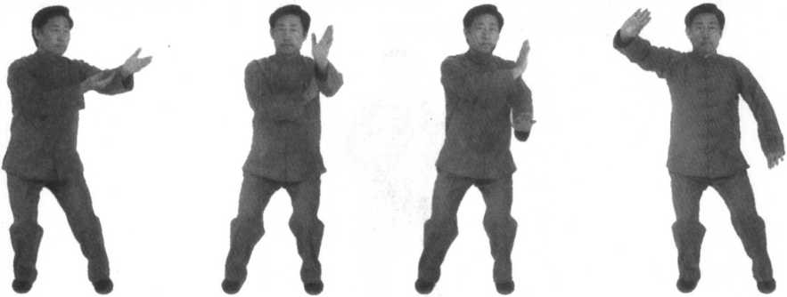 口令4(图 9-11、12、13) 随身转至与右肩平。