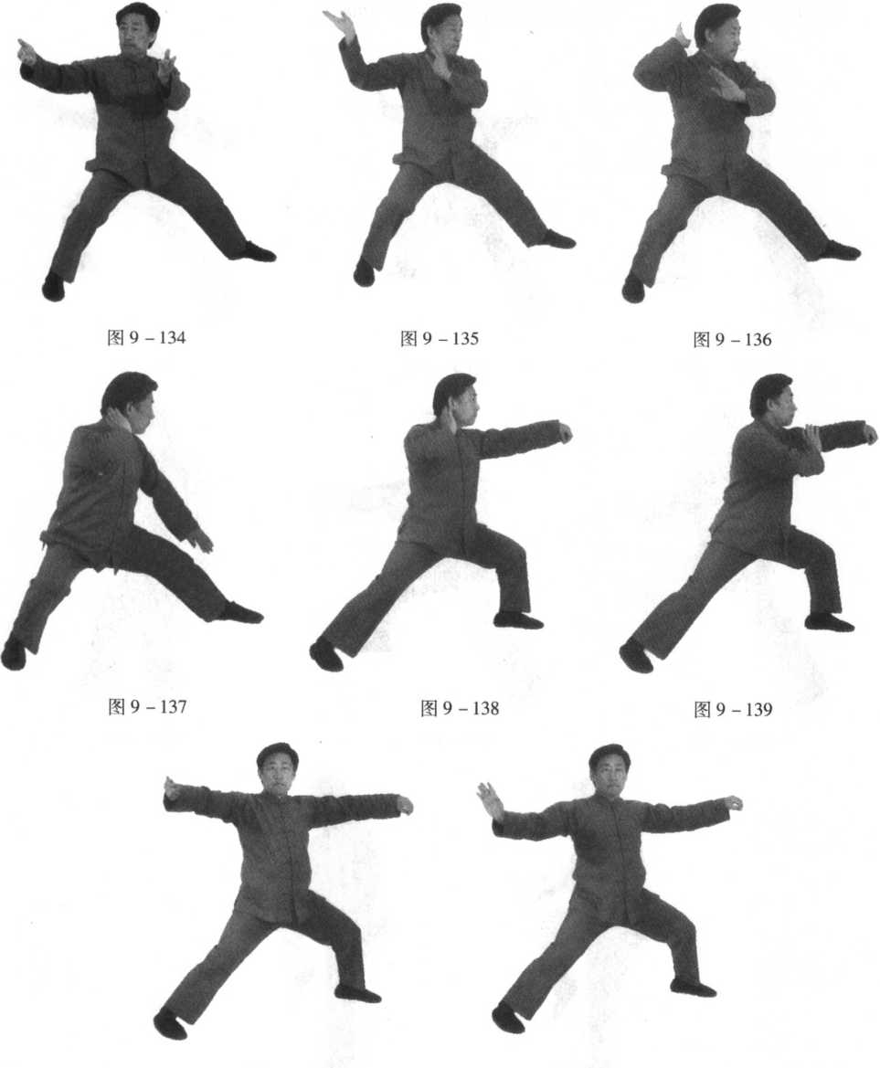 口令 3(图 9-134 至 141)口令 3(图 9-134 至 141)动作要领同第八势“斜行拗步”图9 - 101至107图解。动作要领同第八势“斜行拗步”图9 - 101至107图解。图 9-140图 9-140图 9-141图 9-141