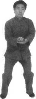 体前。右拳立于中线,拳心向内,左拳立于左胸前,拳眼向上。