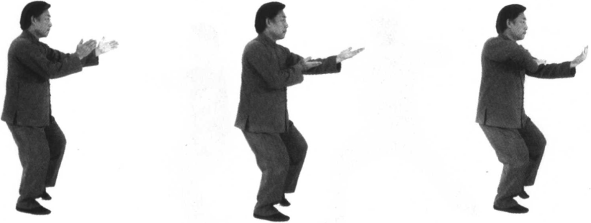 口令3(图9 -242.243) 左掌外旋发力,掌心向前,同时右掌下沉内收至右腹前。口令3(图9 -242.243) 左掌外旋发力,掌心向前,同时右掌下沉内收至右腹前。