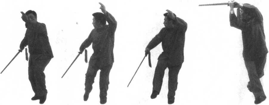 口令2(图11 -205) 重心移至右腿,同时右手握剑内旋向上撩剑至右肩外侧,略低于