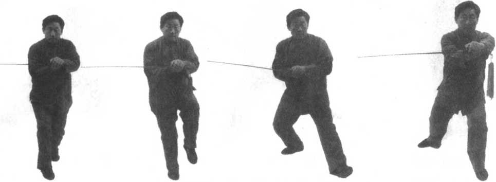 要点:上步轻灵稳健,周身相合,有蓄而待发之势,做到气沉步稳。