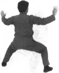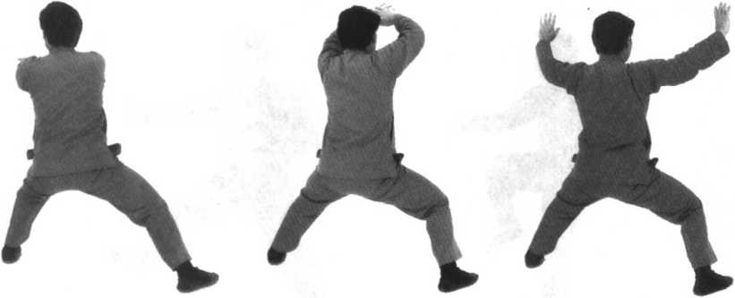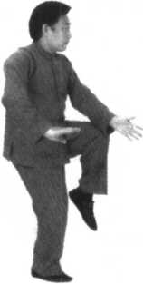 要点:要想达到支撑稳定,关键在于顶劲领起,气沉丹田,周身相合,两掌逆缠时,意贯掌指。