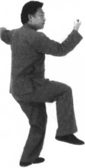 口令2(图6-200.201 .202) 重心左移,提右脚收于左脚内侧,右脚尖点地,同时双手运