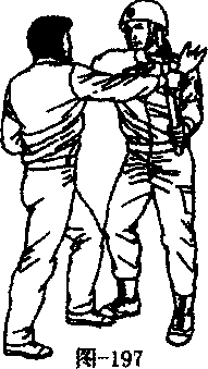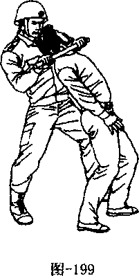 当歹徒手持酒瓶向我直冲而来时警察侧身避过其锋头用棍中部阻挡其右腕(见图-197)