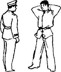 我方将对方控制或缴械后应首先命令或迫使其按照我方发出的口令做出一定的被搜身的姿势并且要求对方要严格执行口令不允许有其他任何超出口令范围的举动。我方发出的口令是带有强制性的,应明确、宏亮、清楚如敌方拒不执行我方可再重复一次但声音更高更紧迫更带有强制性如仍无效果那么我方应立即采取果断行动否则将会失去对其控制。搜身时我方将严格按照搜身原贝叭方法、步骤及姿势去完成不可草率急躁行事一定要认真仔细地对待每一个环节,要提高警惕。具体在搜身过程中采用的姿势一般有站立势、跪立势、伏地势和依扶势等。