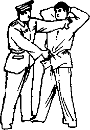 令罪犯背靠墙壁、电线杆等物站立两脚分开两手交叉置于头后我位于罪犯体侧、右脚踏在罪犯的左脚上右手抓在罪犯胸前右小臂于罪犯颌下左手详细搜查罪犯(图569570)0