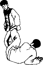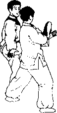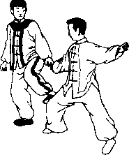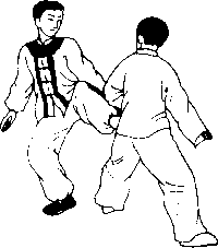 当甲、乙二人都在拳场的斜角上为左大势时,甲转身上步后击 乙,其具体练法如下: