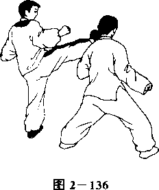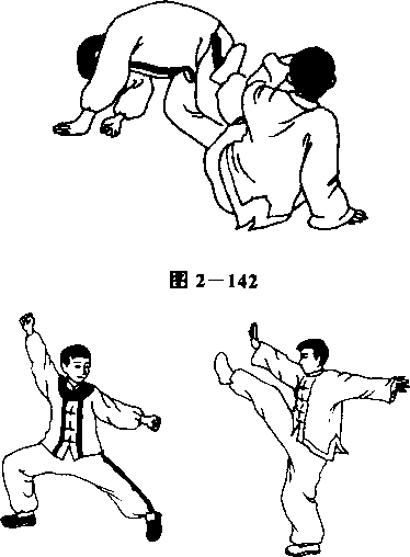 回落于原处;随着甲右腿下落收回,乙左脚向左 图2—140