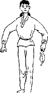 收势:身体直立,右手掌心翻朝内,落于体旁,目平视。