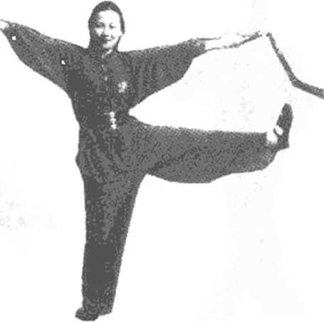 1. 重心于左脚,右脚向左前方(□)斜踢(图11- 1),屈膝,右手