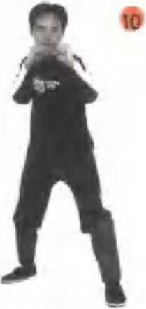 也就是前 腿三后腿七分重量,右手成掌使掌心 向下置于脐前,左手掌前伸、掌心朝 斜向下高与肩齐,两眼注视左手(图 Do练习的时间可以根据个人情况来 决定,并且这个姿势功法可以左右桩 势反复进行练习a