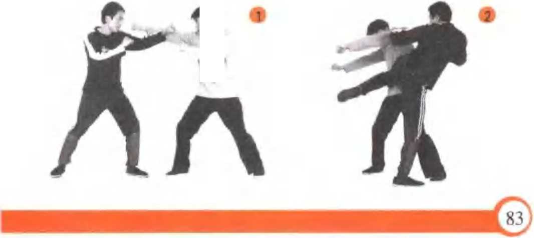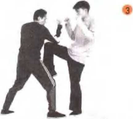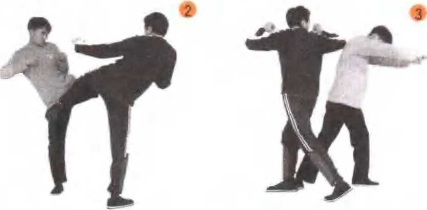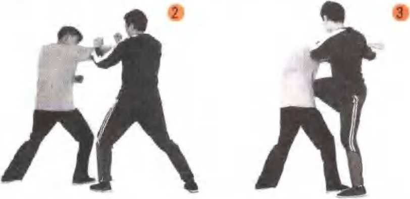 肘膝连击是肘法和膝法的结合打法。这类打法在 实战中巧妙配合可达到击上打下、击下打上的目的, 并且肘膝的结合还可破解对方的近身缠斗1