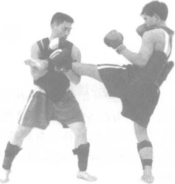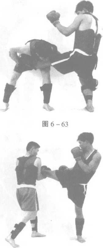 图 6-66图 6-66图 6-64图 6-64双方对峙,对方用左右横踢腿进攻我下肢、 胸、腹部时,我接腿后可用手别。如图6-62、63、 64、65、66。