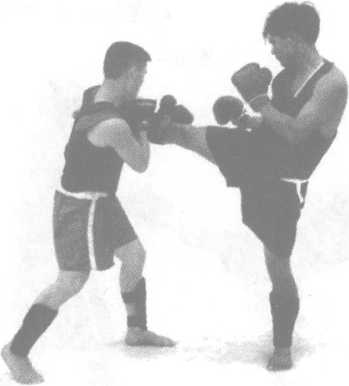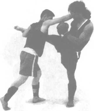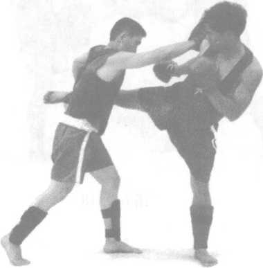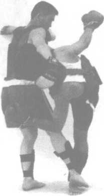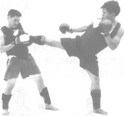2 防守对方用右横踢腿进攻我 胸、腹部。