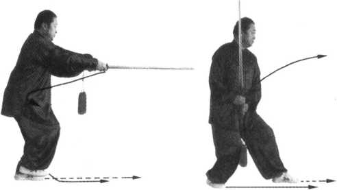 2. 不停,右脚向前趟进一 图6-67 图6-68