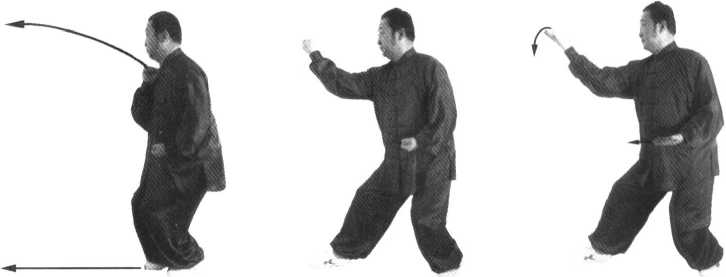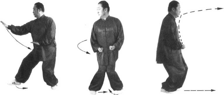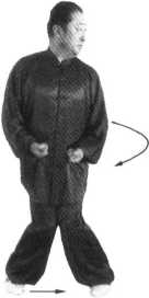 重心移至左腿时,不要突臀,不要长身,姿势要保持原有高度,转身时不可上下起 伏。