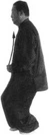 左拳由丹田里缩而拉动肘与拳,贴身边拉边向外拧转,拉至 脐旁时拳心拧成完全向上;右拳同时向外拧转拉至脐旁;左脚尖 的里扣与左拳的回拉要做到整齐,在一个动静里(不可手先动, 脚后动,要一起动,一起停)。