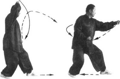动作窍要要同定步鹰捉左式(图4-68 ),此式以前之图省略。