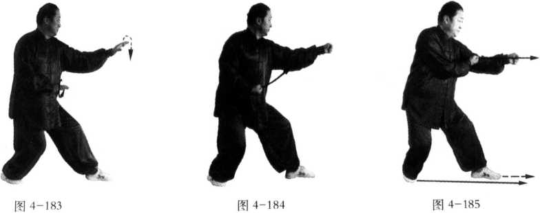 动作窍要同定步鹰捉左式(图4-183),此式以前之图省略。