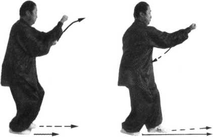 动作窍要与拗步横拳右式相同, 惟此式是直线前进。