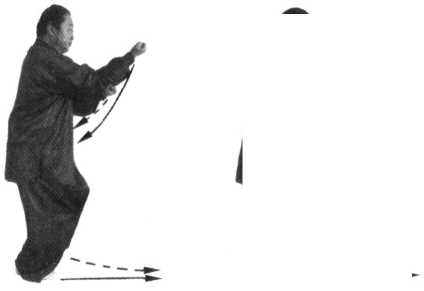转体移重心不可突臀,左 拳及小臂拧贴以蓄力。