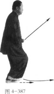 动作窍要同定步鹰捉左式(图4-380 ),此式以前之 图省略。