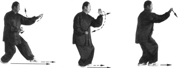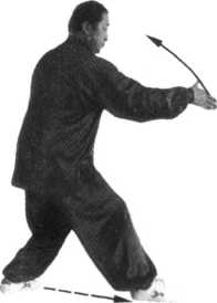 与顺步横拳右式相同,惟左右相反,没有提步;此式是--左一右交替前进练习。
