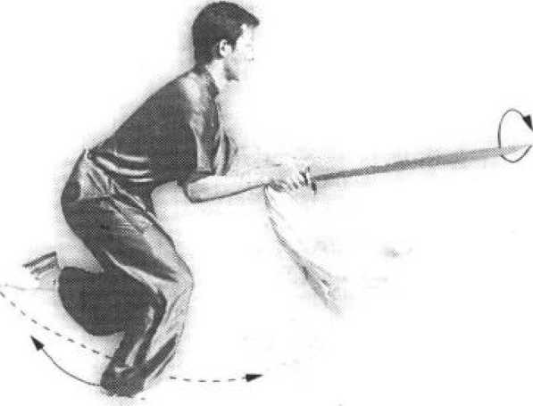 (1)接上势,身体左转180。。左腿直 立,右腿蹬地随转体屈膝提起。同时,右手 持刀外旋,收至右腰间,刀刃向上,刀尖向 前;左掌置于左胸前,掌心向石,掌指向 ±o目视前方(图34-1)。图 34-2(2)上动不停,右脚向前落步成右弓 步。同时,右手持刀,使刀刃向上,向前 土方扎出;刀刃向上,刀与眼平;左掌全 于右肘内侧」掌心向右,掌指向上。目视 刀刃(图34-2)。: 要点:转体迅速,扎刀有力,扎后自然 弹回。图35图35套路动作图解套路动作图解图35图35套路动作图解套路动作图解